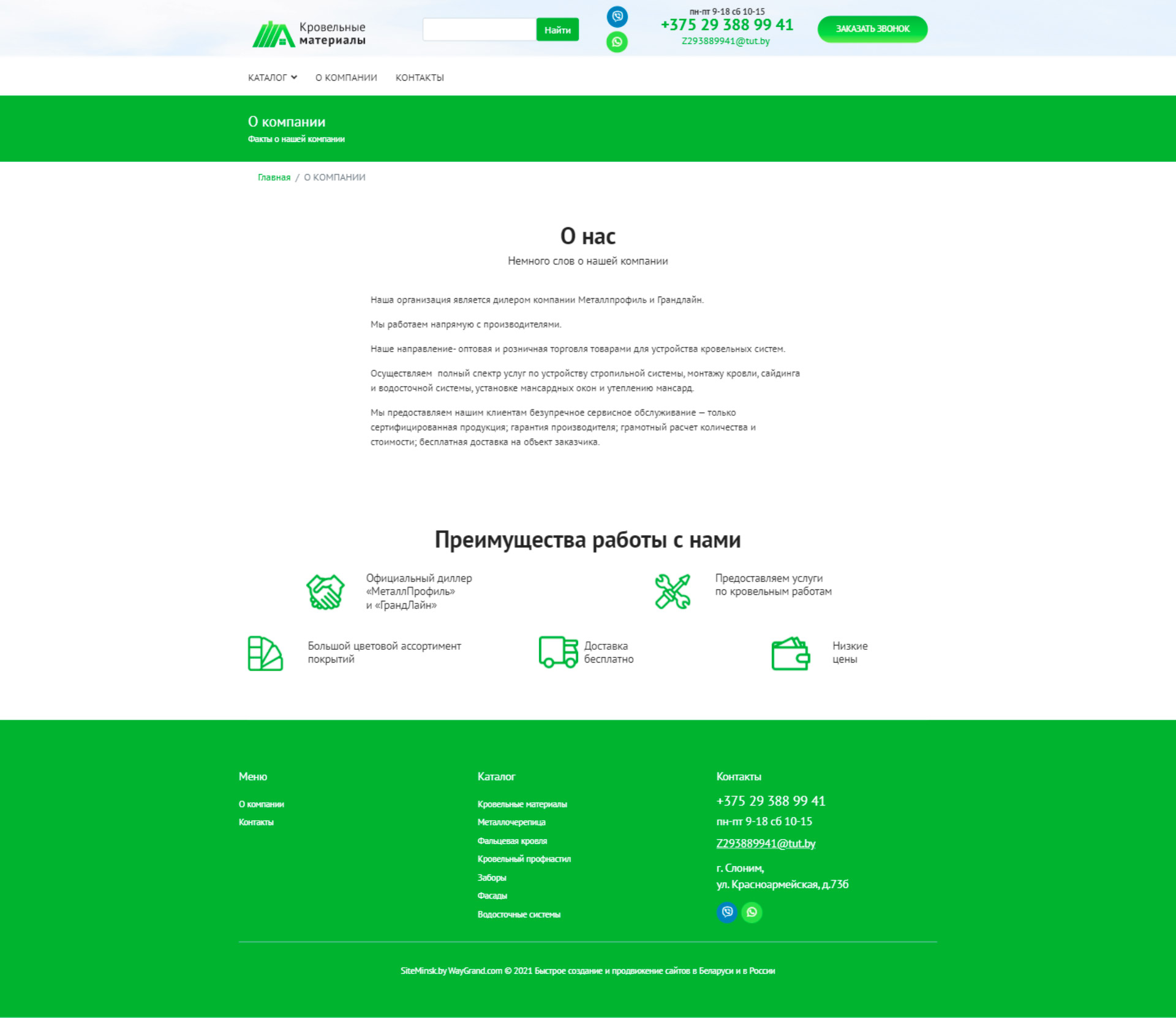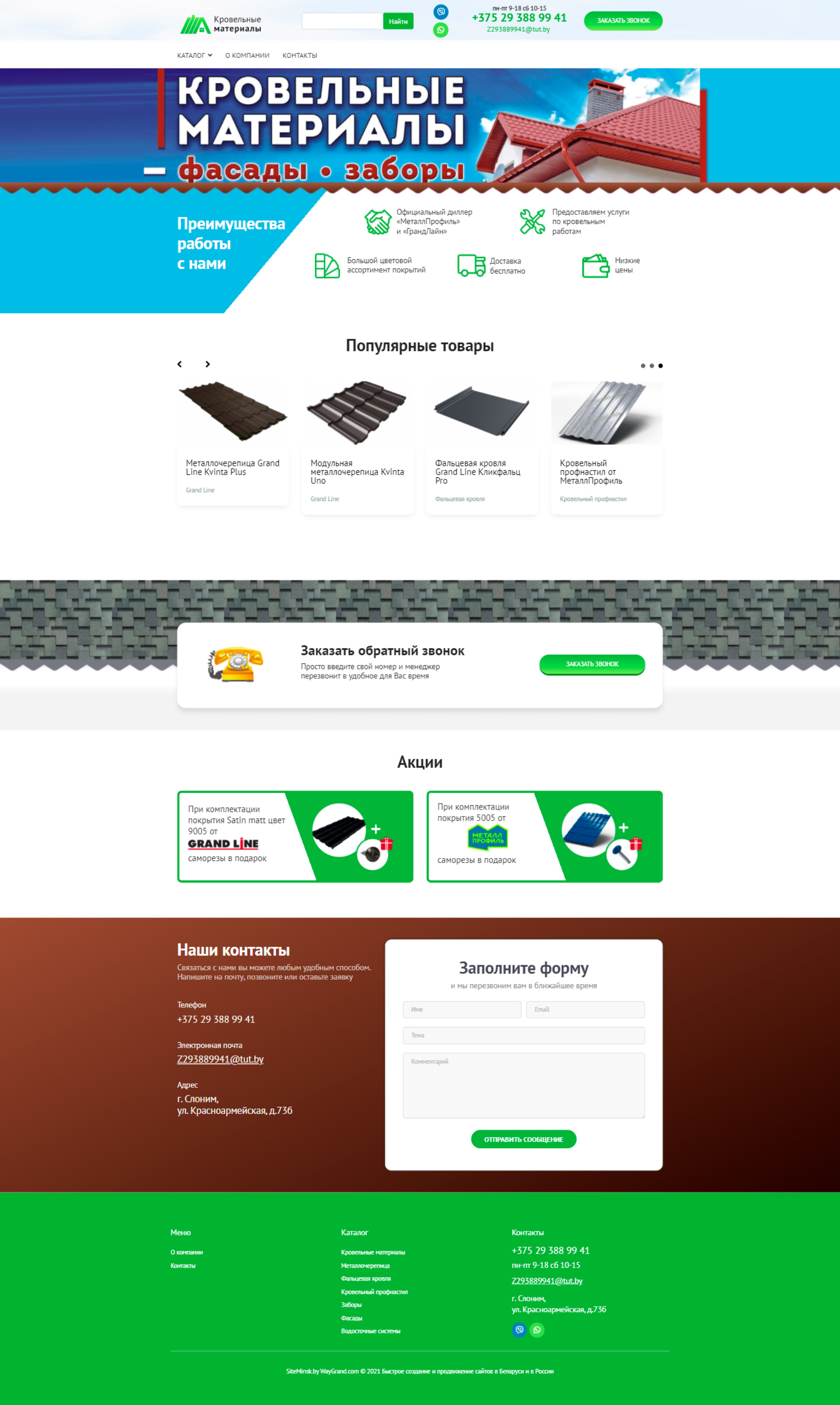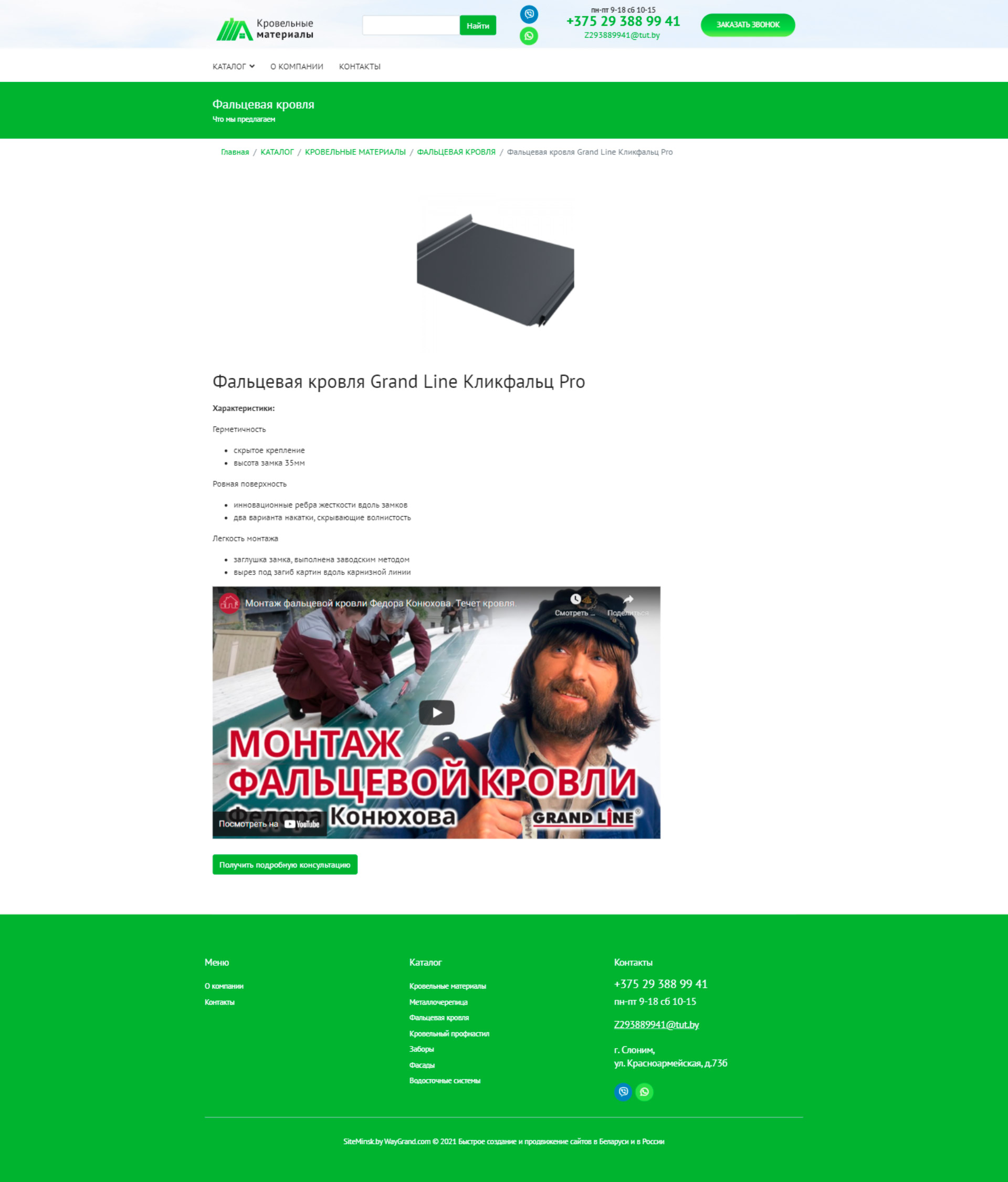 Закажите готовый продающий сайт визитка #324 в Белгороде «под ключ» на waygrand по выгодной цене: свёрстан, отрисован и готов к рекламе. Тематика шаблона «Кровельные материалы».