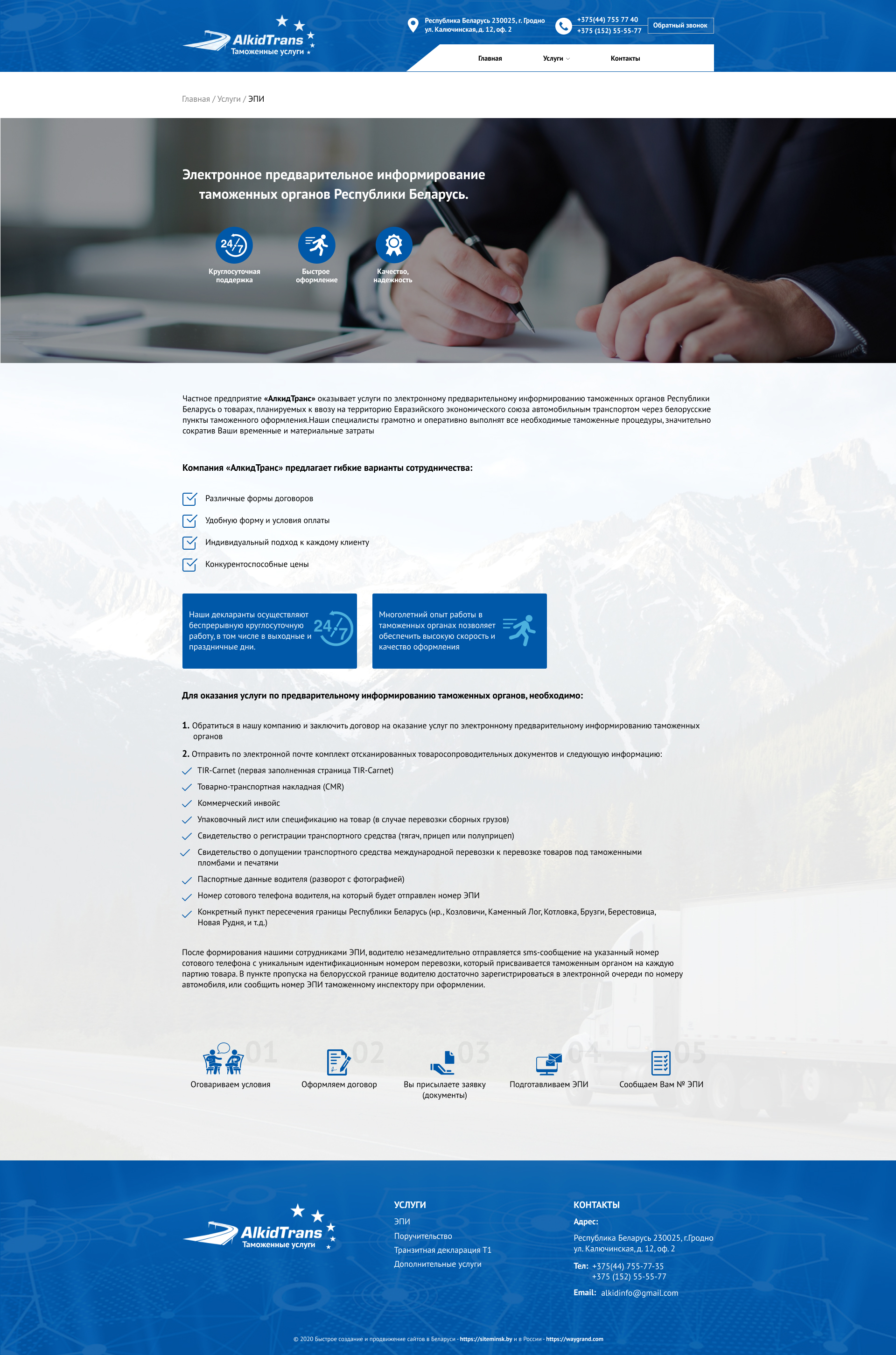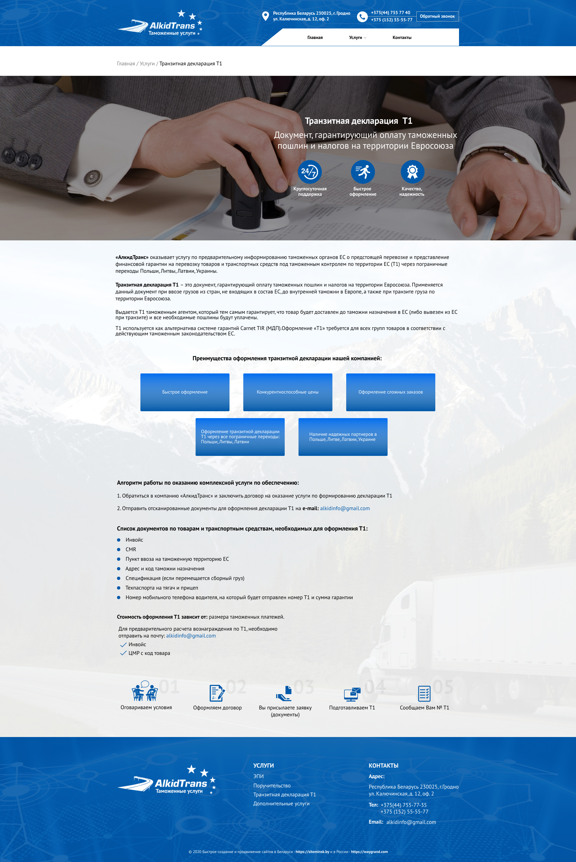 Закажите готовый продающий сайт визитка #234 в Белгороде за 5-7 дня «под ключ»: свёрстан, отрисован и готов к рекламе. Тематика шаблона «Таможенные услуги».