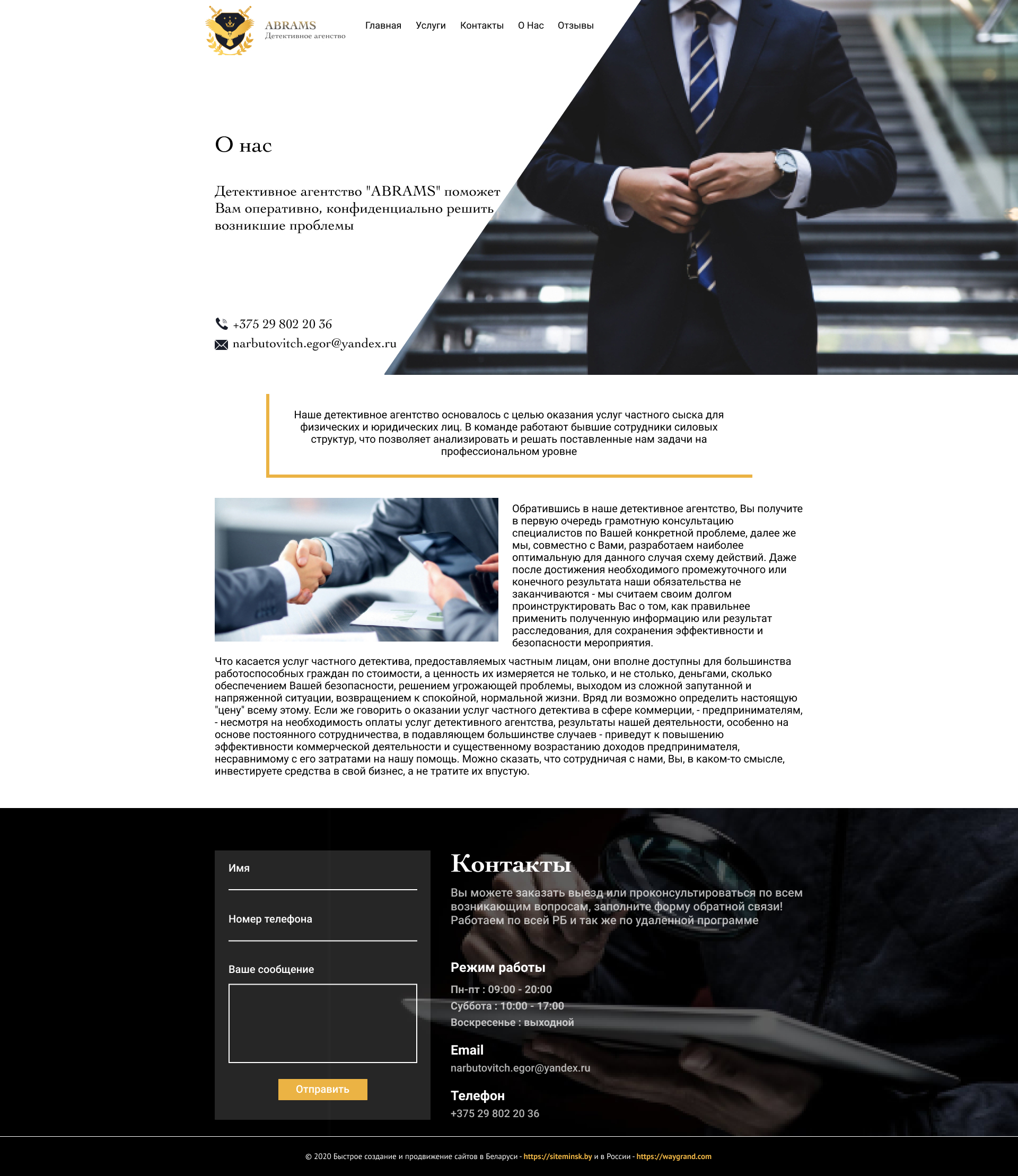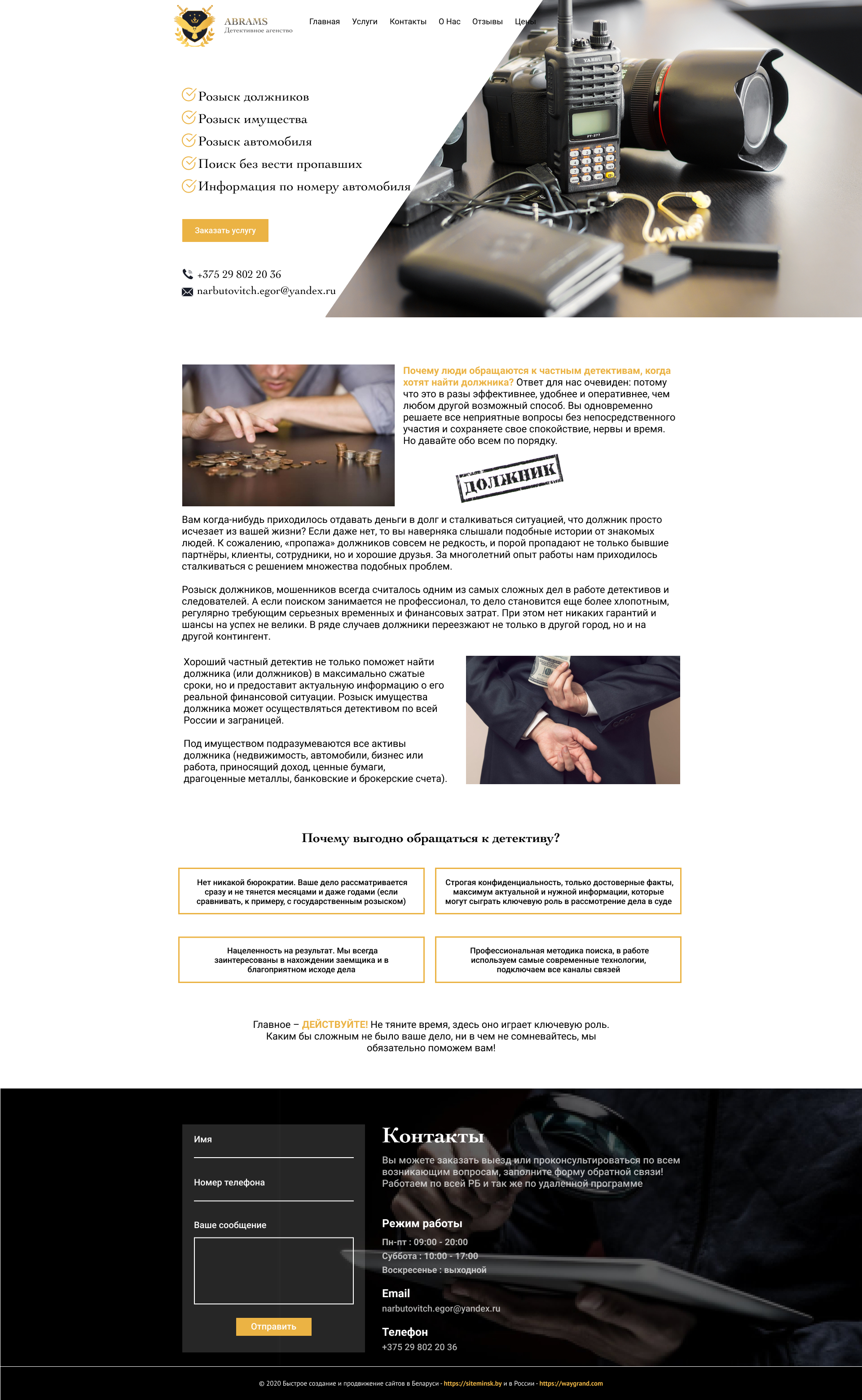 Закажите готовый продающий сайт визитка #239 в Белгороде за 5-7 дня «под ключ»: свёрстан, отрисован и готов к рекламе. Тематика шаблона «Частное детективное агентство».